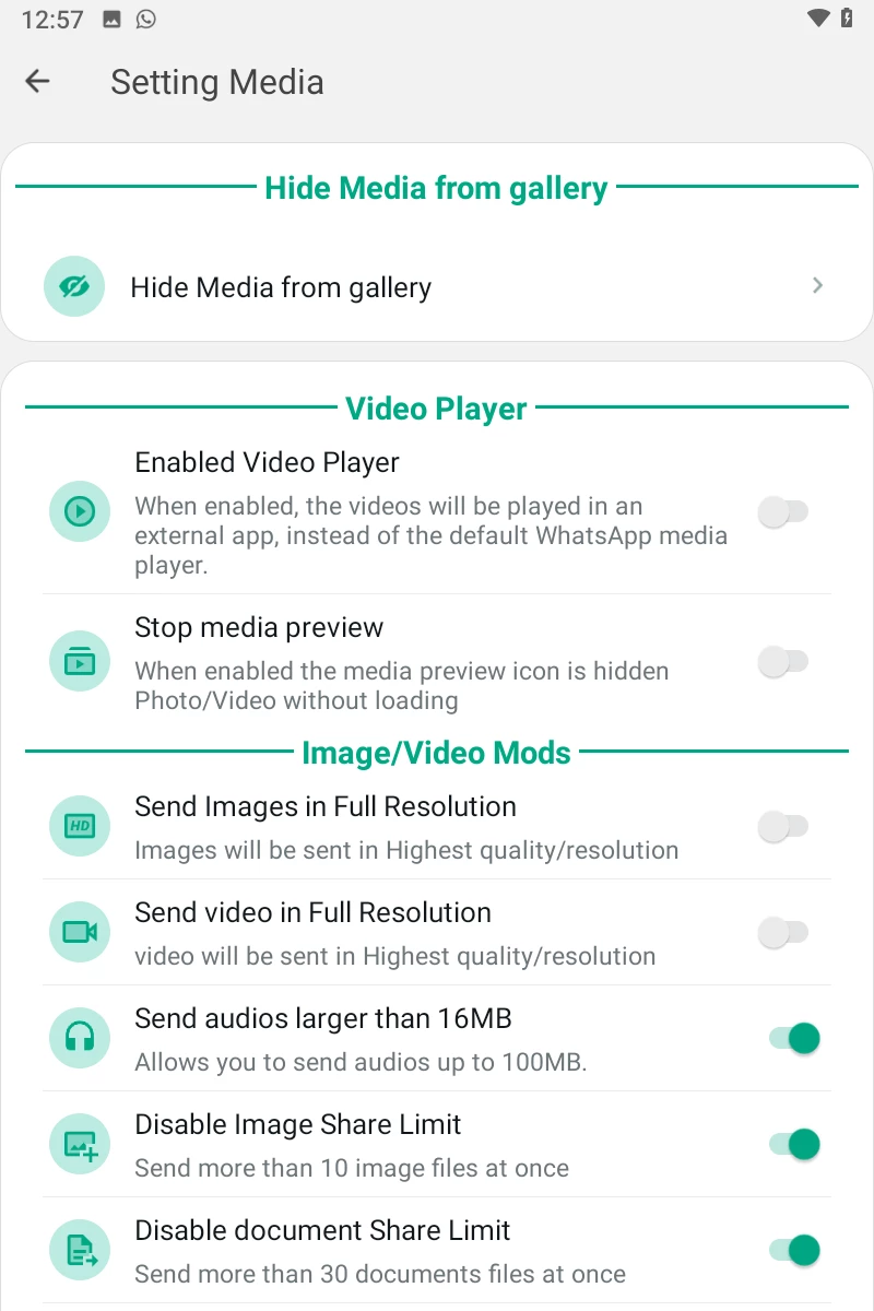 No aplicativo oficial, precisamos compactar arquivos grandes antes de compartilhá-los, resultando em arquivos de baixa qualidade. Não há essa restrição no WhatsApp Plus; você pode compartilhar arquivos sem limites de tamanho e com alta qualidade garantida.